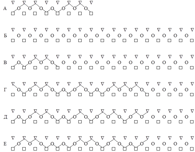 «Соедините квадрат с треугольником, два треугольника, треугольник с квадратом, два квадрата, ещё раз два квадрата, квадрат с треугольником, два треугольника, треугольник с квадратом, квадрат с треугольником, треугольник с квадратом, два квадрата, квадрат с треугольником».