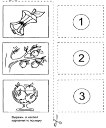 Матеріал. Великі картки, прикрашені якимсь розписом, у нижній частині яких три-чотири вільних віконця. Маленькі картки з окремими елементами візерунка, серед яких варіанти розпису, що відрізняються кольором, деталями.