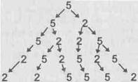 Получились «веточки» с различными числами: 55522, 55252, 55225, 52552, 52525, 52255. Затем выписывается цифра 2.