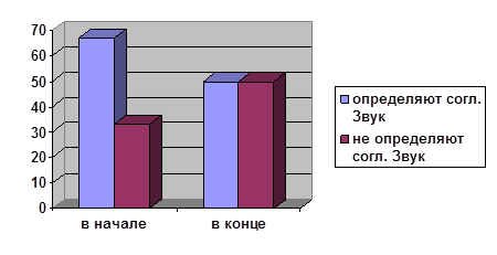 При определении согласного звука, было выявлено, что 67% определяют в начале слова согласный звук, а 33% не выделяют согласный звук в начале слова.