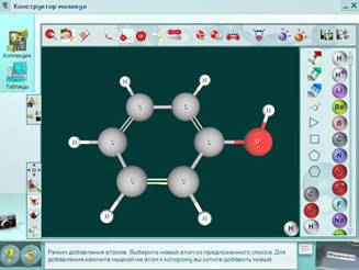 «Конструктор молекул» позволяет получать управляемые динамичные трехмерные цветные изображения штриховых, шаростержневых и масштабных моделей молекул. В «Конструкторе молекул» предусмотрена возможность визуализации атомных орбиталей и электронных эффектов, что значительно расширяет сферу использования моделей молекул при обучении химии.