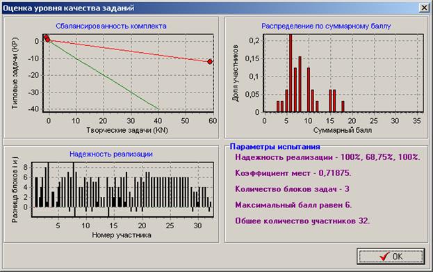 Данная шкала имеет огромное практическое значение, так как позволяет с большой точностью определить, является ли данный комплект задач сбалансированным или нет. Поэтому она используется в разработанной программе в качестве одного из показателей качества задач.
