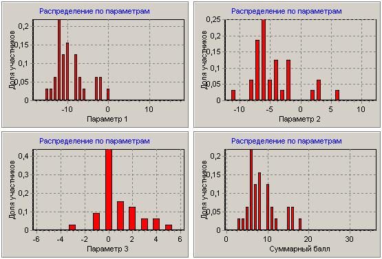 Таким образом, имея результаты олимпиады (или, например, сессии), можно точно подсчитать эти три показателя, исходя из них, можно с большой точностью говорить о распределении мест. Здесь возникает еще один вопрос: какой из показателей главный, а какие второстепенный и третьестепенный? Частично эта проблема решена выше, но там описывались только два параметра. Решение здесь может быть таким. Необходимо вводить несколько «дифференцированных подходов» на базе значений показателя ή 1 (так как он является основным и главным для других). Если значения ή 1 для большей части (или для всех) участников отрицательны (это говорит о потенциальной слабости испытуемого коллектива), то имеет смысл за второстепенный показатель принять ή 2 , а за третьестепенный – ή 3 . Проще говоря, в этом случае мы акцентируем внимание на репродуктивные (типовые) задачи, которые, по логике вещей, участники должны решить. Продуктивные (творческие) же задачи мы как бы не учитываем вообще в силу того, что такой коллектив может их не решить вообще. Например, таким ансамблем является коллектив школьников, представленный в программе в базе dbolymp1. Это условно первый вариант дифференцированного подхода.