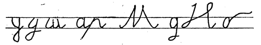Какое расстояние нужно оставлять между словами? (Примерно равное букве и строчной.) На каком месте должно быть пересечение петли у букв у, д? (На нижней строке.) На какой высоте следует начинать поперечное соединение у буквы м? (На середине строки, если пишут по двойной разлиновке.) На какой высоте следует соединять буквы мил? (Примерно треть высоты буквы.) Какой высоты должно быть нижнее закругление у буквы в? (Примерно две трети высоты буквы). Какой, высоты должна быть петля у буквы е? (Чуть больше половины высоты буквы.) И т. д.