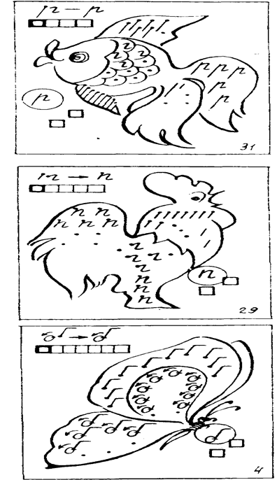 Запись новой буквы и ее элементов в плоскости рисунка превращает монотонное повторение одинаковых элементов в увлекательное занятие — «раскрашивание картинки». Дети с увлечением прописывают несколько десятков одинаковых элементов и букв, практически усваивая не только силуэт, но и порядок написания изучаемой буквы, достигая определенной степени автоматизации письма уже в период ознакомления с новой буквой, после чего работа в программной прописи для I класса сводится к соотнесению размеров буквы с разлиновкой и написанию ее в соединении с другими буквами.