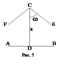 3) Из предыдущего положения вытекает, что на параллели Лобачевского различается направление параллельности. Прямая CE параллельна прямой АВ в направлении или в сторону от A к B, прямая CF параллельна той же прямой AB в направлении или в сторону ВА (от В к А) (рис.5).