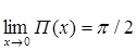 Построим C’K, образующую с CD угол a=w, ясно, что w’< a , т.к. параллельC’E’ ближе к перпендикуляру, чем расходящаяся C’K. Итак, w' < w ; отсюда следует, что угол параллельности убывает по мере удаления от прямой АВ; чем ближе т. С к прямой АВ, т.е. чем короче перпендикуляр CD, тем больше угол параллельности. Если обозначить расстояние т. С от прямой АВ, т.е. длину перпендикуляра CD через х, то можно сказать, что угол параллельности есть функция от х, названная «функцией Лобачевского» и обозначаемая П (х). Это монотонно убывающая функция. При изменении аргумента х от 0 до ¥ функция П (х) непрерывно изменяется соответственно от p/2 до 0. Таким образом ,