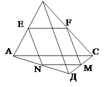 Задача 4. Построить трапецию АВСД по данным диагоналям АС, ВД, стороне АД и отрезу МN, соединяющему середины её оснований.