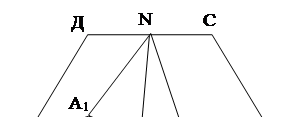 Теперь построим искомый четырехугольник. Делим отрезок N1 N точкой М на два конгруэнтных отрезка, строим точку В1 , симметричную А1 относительно М. По трем сторонам построим треугольники А1 МА и МВВ1 . Перенеся отрезок А1 А на вектор А1 N, а отрезок ВВ1 на вектор В1 N, подучим все четыре вершины искомого 4-х угольника АВСД. Нетрудно показать единственность решения задачи.