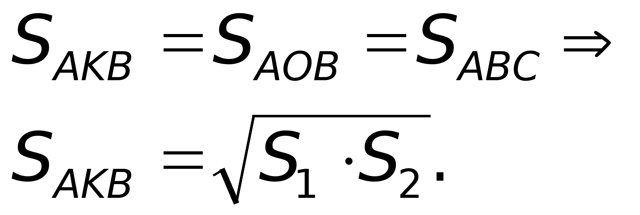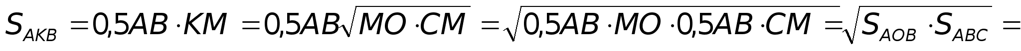 Задача 25. Площадь треугольника АВС S1; площадь треугольника АОВ, где О – точка пересечения высот, равна S2. На прямой СО взята точка К такая, что треугольник АВК – прямоугольный. Докажите, что площадь треугольника АВК есть среднегеометрический между S1 и S2.