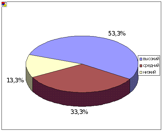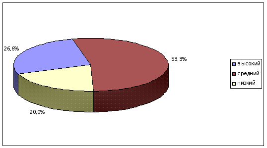 Сначала проведем обобщенный анализ данных. В результате получается, что количество детей с низким уровнем составляет 20 %, со средним – 53,3%, с высоким – 26,6 %.