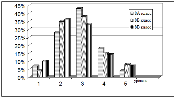 | 8 В класс | 3 | 10% | 10 | 36% | 9 | 33% | 4 | 14% | 1 | 7% |