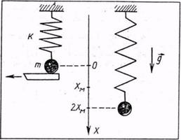Выведем груз из положения равновесия, растянув пружину на длину Хm