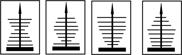 Вам понадобиться обычная большая пирамидка, состоящая из 8 колец разного размера, основания и верхушки. Кроме того, вам потребуется приготовить 5 – - 7 карточек (из картона или плотной бумаги) со схематическими рисунками разных, на первый взгляд непривычных, вариантов собранной пирамидки. Рисунки могут быть такими: