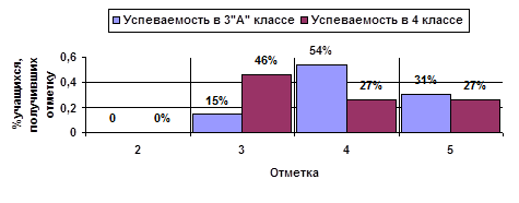 · В 3 «А» классе, где наряду со стандартными методиками обучения использовались и игровые, средний балл по результатам контрольного эксперимента увеличился на 0,6 балла по сравнению с результатами констатирующего эксперимента;