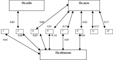 • слабая обратная корреляционная связь между направленностью на себя и направленностью на общение (-0,54).