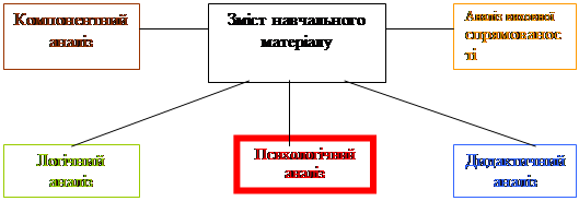 Ідея заповнення психолого – педагогічним змістом основних етапів навчальної діяльності учнів випливає , по-перше , з вимог , визначених основними загально психологічними принципами організації навчально-виховного процесу : дослідження психічного розвитку повинно проводитися в природніх умовах навчально-виховного процесу (лабораторні методи можна застосовувати лише у виключних випадках), і по-друге , підтверджується загальною схемою аналізу змісту навчального матеріалу (за М.І.Махмутовим).