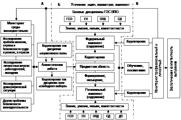 Положения концепции образования в области безопасности жизнедеятельности, разработанные ведущими российскими учеными (С.В. Белов, Б.Е. Прусенко, А.К. Прыгаев, Е.В. Глебова, О.Н. Русак, П.П. Кукин, Л.А. Михайлов и др.), решаются в основном эмпирически, усилиями отдельных вузов или кафедр. Это происходит по той причине, что улучшение подготовки будущего инженера, умеющего решать задачи безопасности жизнедеятельности в среде обитания, достигается в основном как совершенствование традиционной практики обучения. Следствием является тот факт, что студент, подготовленный по инженерной специальности (машиностроение, строительство, транспорт и т.д.), оказывается профессионально подготовленным к производственной деятельности по приобретенной специальности, но не всегда готов к анализу и разрешению реальных ситуаций в сфере производственной и экологической безопасности, которые ему необходимо решать в проектной, технологической, организационной и иной профессиональной деятельности. В качестве одной из основных причин сложившейся ситуации, по нашему мнению, выступает недостаточное научное обеспечение системы обучения безопасности жизнедеятельности.