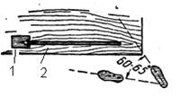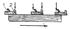 2.Строгание. рис.2 Рабочая стойка:1-упор для бруса;2-верстак. |