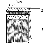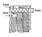 Совместите два отпиленных бруска (один с разметкой микрошипов, другой без ) таким образом чтобы их торцы образовывали общую площадь. Затем выдвиньте левый (держать нужно разметкой на себя) край неразмеченного бруска на 3мм левее размеченного бруска (рис.5) и зафиксируйте их в тисках. Воспользуйтесь ножовкой с обушком и аккуратно выпилите микрошипы, подпишите оба бруска 1 и 2. Таким же образом выпилите микрошипы на оставшихся двух брусках и подпишите их тоже 3 и 4. |