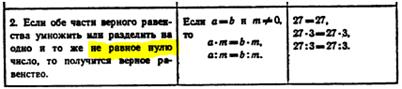 Не смотря на то, что случай переменной в знаменателе здесь еще не используется, следует обратить внимание учащихся на действия с уравнениями, а именно: «Если обе части уравнения умножить или разделить на одно и то же отличное от 0 число, то получится уравнение, равносильное данному».