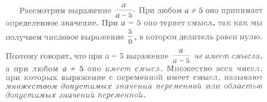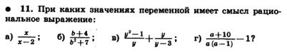 Далее приводятся задания для определения области допустимых значений переменной и нахождения значений переменных, при которых выражение не имеет смысла.