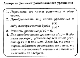 Далее следует рассмотреть алгоритм решения рационального уравнения с проверкой изменения множества допустимых значений на каждом шаге.