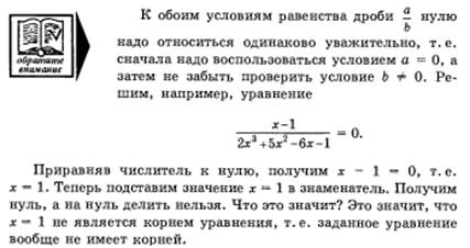 Использование условия равенства дроби нулю или условия равенства двух дробей позволяет добиться более глубокого понимания существа дела и значительно снизить число ошибок, допускаемых учащимися при решении уравнений указанного вида.