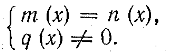 Равносильность этих предложений можно доказать, опираясь на свойство числовых дробей: дроби с одинаковыми знаменателями равны тогда и только тогда, когда их числители равны, а общий знаменатель отличен от 0 (выражение q(х) имеет смысл при любом значении х).