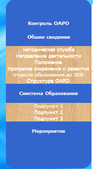 Это главная страничка на которой размешена основная информация о сайте в разработку интерфейса входи создание развертывающегося меню с подменю (рис. 4) (навигации) .