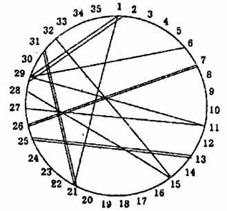 Для этой цели, как правило, используется форма окружности, на которой располагаются порядковые номера испытуемых по спискам их фамилий.