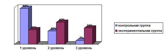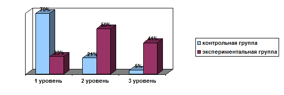 Распределение студентов контрольной и экспериментальной группы по уровням креативной готовности к разработке и использованию средств ИКТ в учебном процессе.