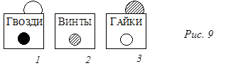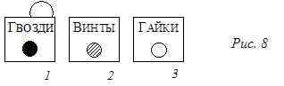 Откроем коробку 1. Допустим, там оказались гайки (рис. 8; а могли быть и винты: рассуждения проводились бы аналогично).