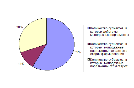 Разнообразие форм молодежного парламентского движения демонстрирует, что в каждом регионе, в каждом муниципальном образовании создаваемый представительный молодежный орган получает тот статус, который восполняет ту или иную нишу в общественной составляющей молодежной политики региона, в наибольшей степени отражает специфику молодежного населения по национальному, демографическому, половому признакам, по занятости в различных сферах производства, по месту проживания и т.д.