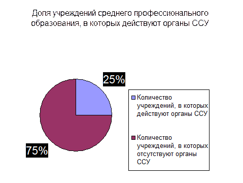 Важным фактором развития демократических форм управления в системе высшего и среднего профессионального образования и значимым элементом самореализации и волеизъявления студенчества, как наиболее активной части молодёжи, является студенческое самоуправление. Сегодня органы студенческого самоуправления существуют в каждом третьем учреждении высшего и каждом четвертом учреждении среднего профессионального образования.