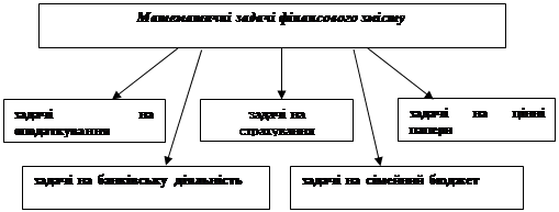 Математика дає методи розв‘язання економічних та фінансових задач. Вона також є важливим елементом загальної культури населення. Відтак математичні знання слід розглядати як складову в системі фундаментальної освіти майбутніх громадян держави, зокрема їх фінансової освіти. Математичні задачі фінансового змісту - це засіб ознайомлення учнів з застосуванням математичних понять та методів у фінансовій галузі та розкриття можливостей математики у фінансовій теорії.