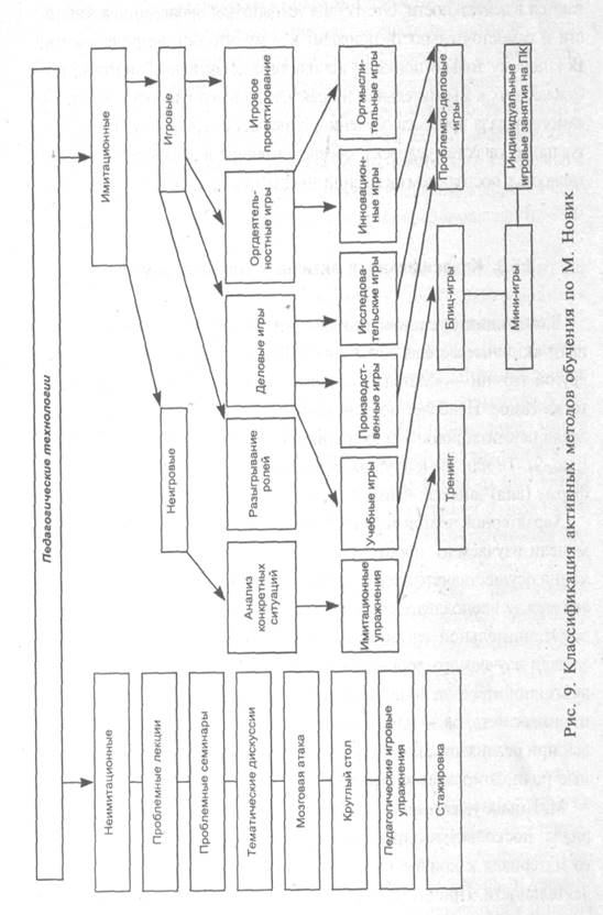 Важнейшим средством активизации личности в обучении выступают активные методы обучения (АМО). В литературе встречается и другой термин — «Метод активного обучения» (МАО), что означает то же самое. Наиболее полную классификацию дала М. Новик, выделяя неимитационные и имитационные активные группы обучения Те или иные группы методов определяют соответственно и форму (вид) занятия: неимитационное или имитационное.