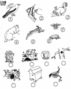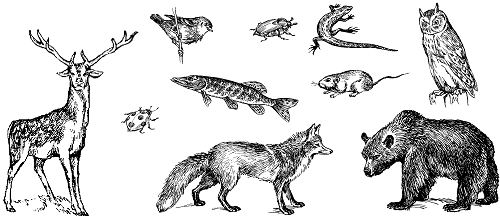 Жаба, їжак, бджола, корова, білка, ведмідь, дятел, собака.