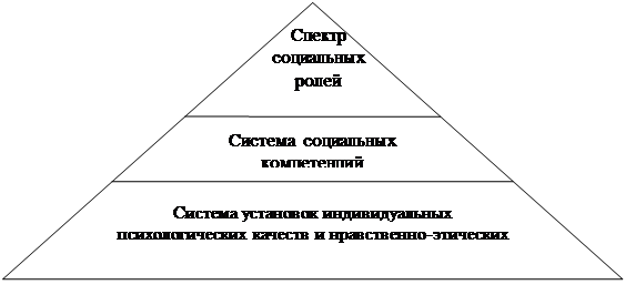 · Как интегративная характеристика личности социальная компетентность имеет в определенной степени четкую структуру, в которой выделяются такие компоненты как: система индивидуальных психологических качеств и нравственно-этических установок, комплекс социальных компетенций, спектр социальных ролей.