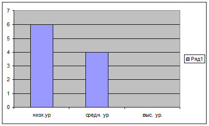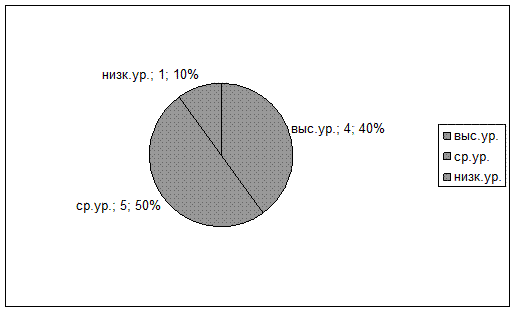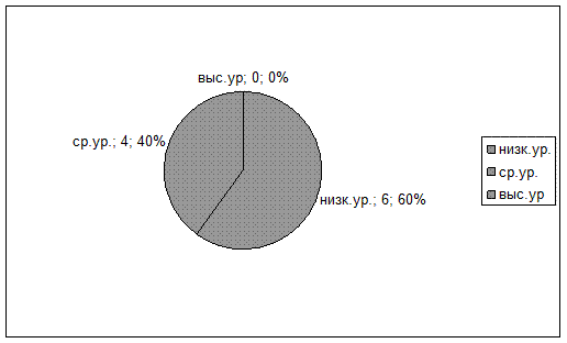 У 10 %- низкий уровень. Затрудняются отвечать на вопросы. Проявляют неустойчивый интерес к истории своего города, его достопримечательностям. Слабо ориентируется в эмоциональных состояниях окружающих, наряду с добрыми поступками часто наблюдаются проявления негативного поведения и отношения к окружающему миру.