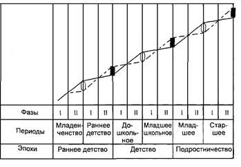 Возрастная периодизация зародилась в античной Греции. В различных отраслях науки о человеке существуют разнообразные, взаимодополняющие друг друга возрастные периодизации. В педиатрии различают два этапа и шесть периодов развития ребенка с момента зачатия до 18 лет, в педагогике принято семь периодов созревания, в психологии выделяют пять периодов развития ребенка[4] .