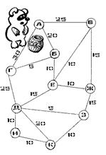 7. Винни-Пух пошел в гости к Пятачку. Помогите Винни-Пуху найти кратчайший путь от своего дома "А" до дома Пятачка "К". Числа обозначают время движения (в минутах) от пункта до пункта. В ответе напишите время (в секундах), которое он затратит на весь путь. (60 минут = 3600 сек.)