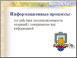 Информация не существует сама по себе, она проявляется в информационных процессах.