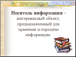 Основное хранилище информации для человека — его память, в том числе генетическая. Существует и «коллективная память» — традиции, обычаи того или другого народа.