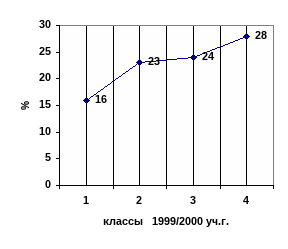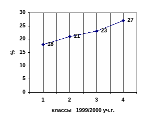 | Учатся без троек | 1 | 12 | 1 | 17 | 2 | 50 | 3 | 43 | 7 | 28 |