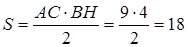 Пример А4: Дан треугольник ABC . Проведена высота BH , равная 4. Найдите площадь треугольника ABC , если известно, что AH =6, BC =5.