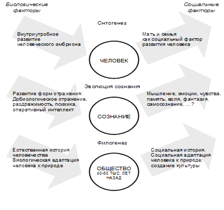 Схема 3. Онто- и филогенез: параллельность воздействия биологических и социальных факторов