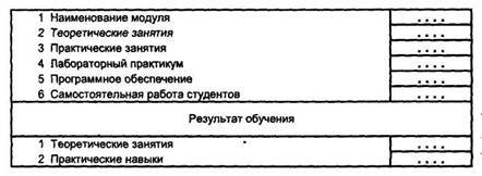 - модуль как единица государственного учебного плана по специальности, представляющая набор учебных дисциплин, отвечающий требованиям квалификационной характеристики;