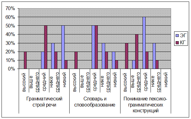 Результаты исследования состояния лексико-грамматического строя речи ЭГ