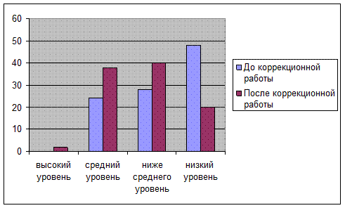 На 3 этапе (февраль 2009г.) нашего исследования, проведен контрольный эксперимент. Его целью являлась повторная оценка уровня лексико-грамматических нарушений у воспитанников подготовительной логопедической группы «Говорунчики» и выявление эффективности применения игровых приемов в процессе работы по коррекции лексико-грамматических нарушений.